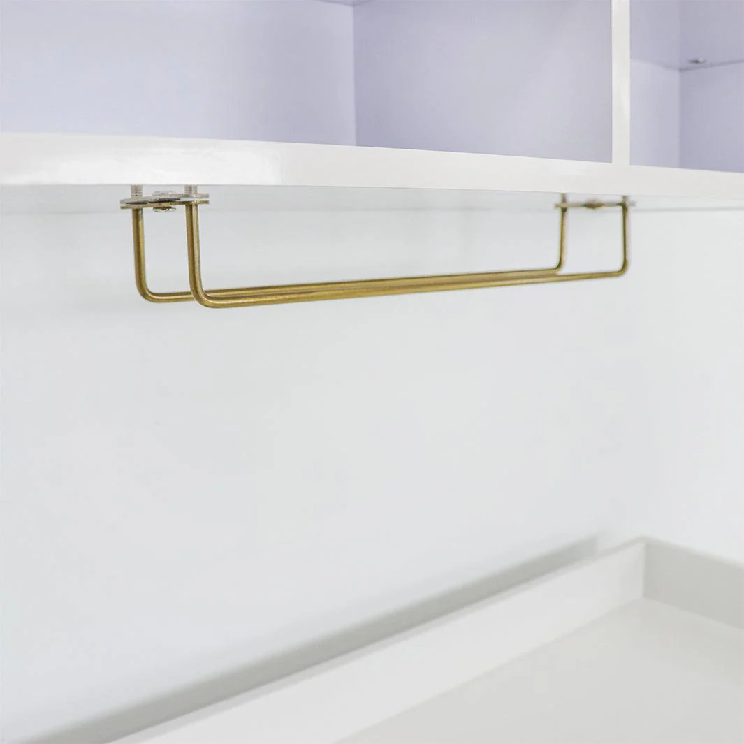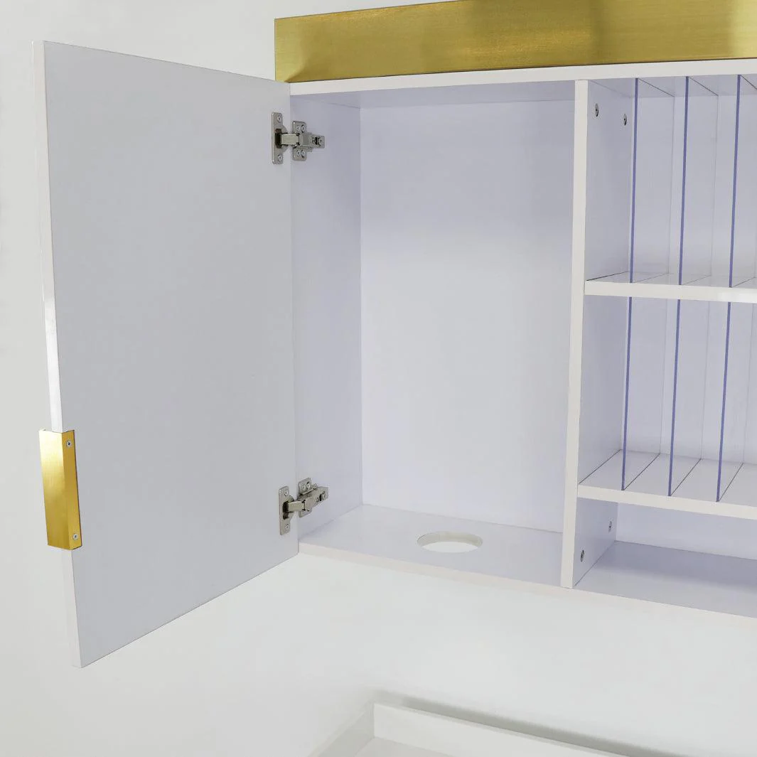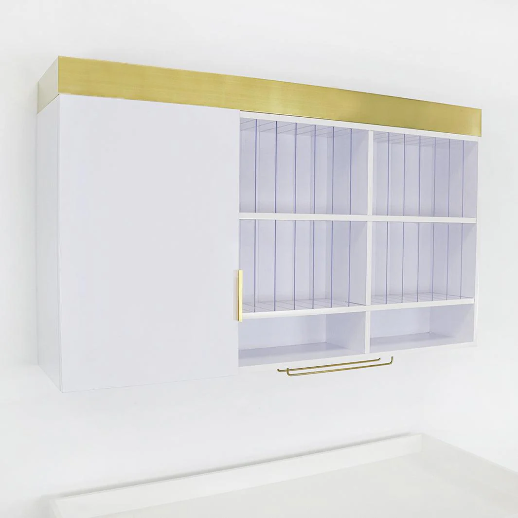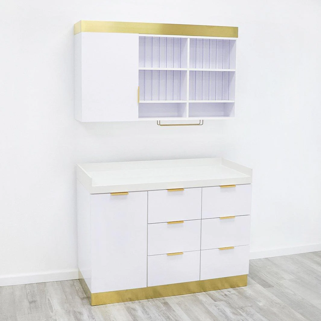 For upscale salons seeking both sophistication and superior functionality, the Ava Salon Color Bar represents the pinnacle of salon station design. This exquisite salon station combines luxurious materials, intelligent storage solutions, and professional-grade durability to create the perfect workstation for elite stylists and colorists. Available exclusively at James Barber Shop, this salon station features faux off-white stone countertops, brushed gold aluminum accents, and high-gloss laminate finishes – delivering unmatched style and performance.
