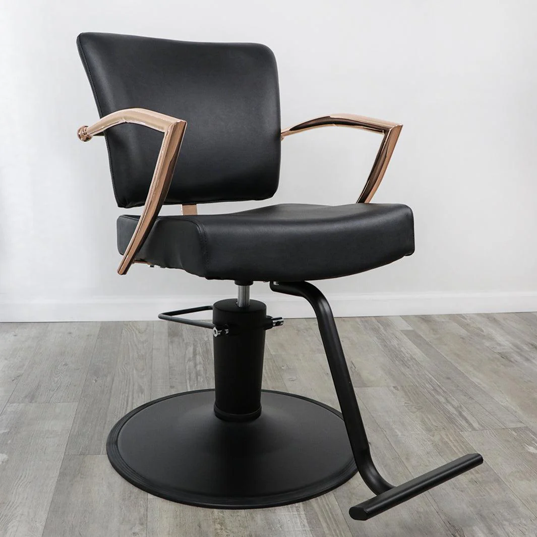 - Heavy-Duty Rose Gold Armrests: The chair’s rose gold armrests add a touch of sophistication to your salon décor.