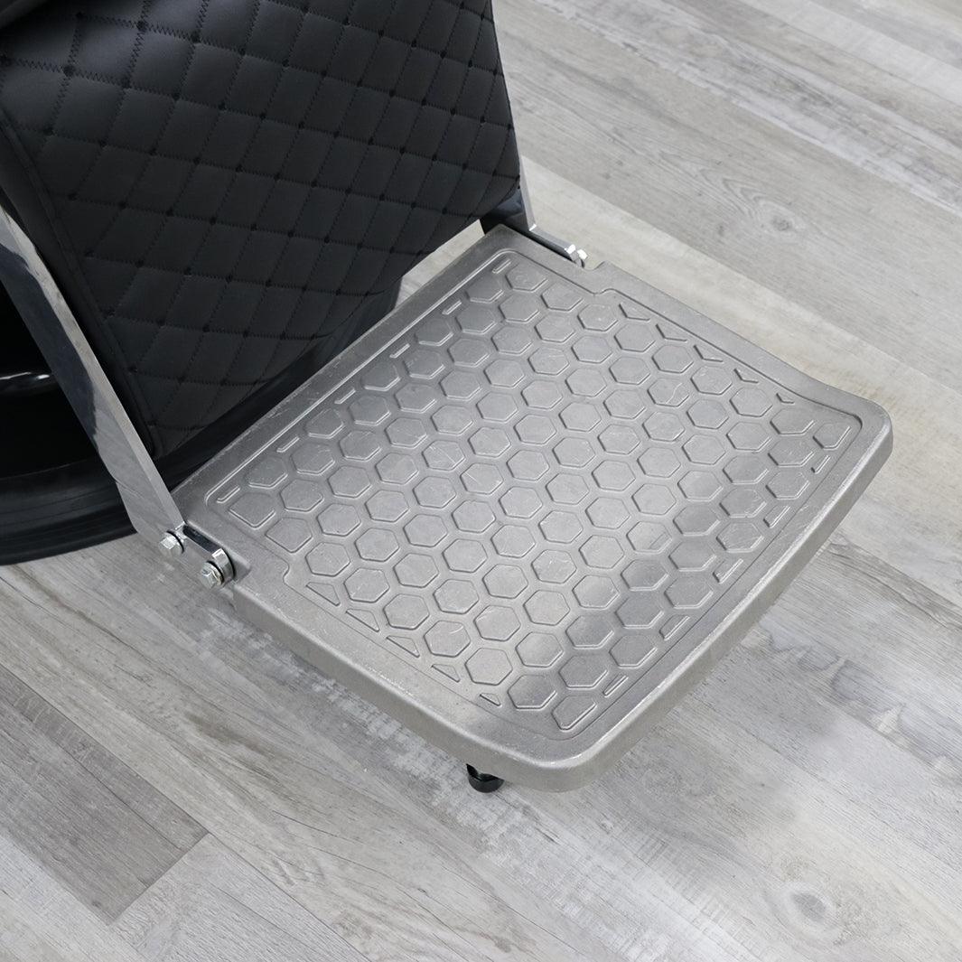 - Cast Aluminum Footrest: The high-quality aluminum footrest resists corrosion and adds stability during cuts, a nod to the ruggedness of vintage Belmont barber chairs for sale.