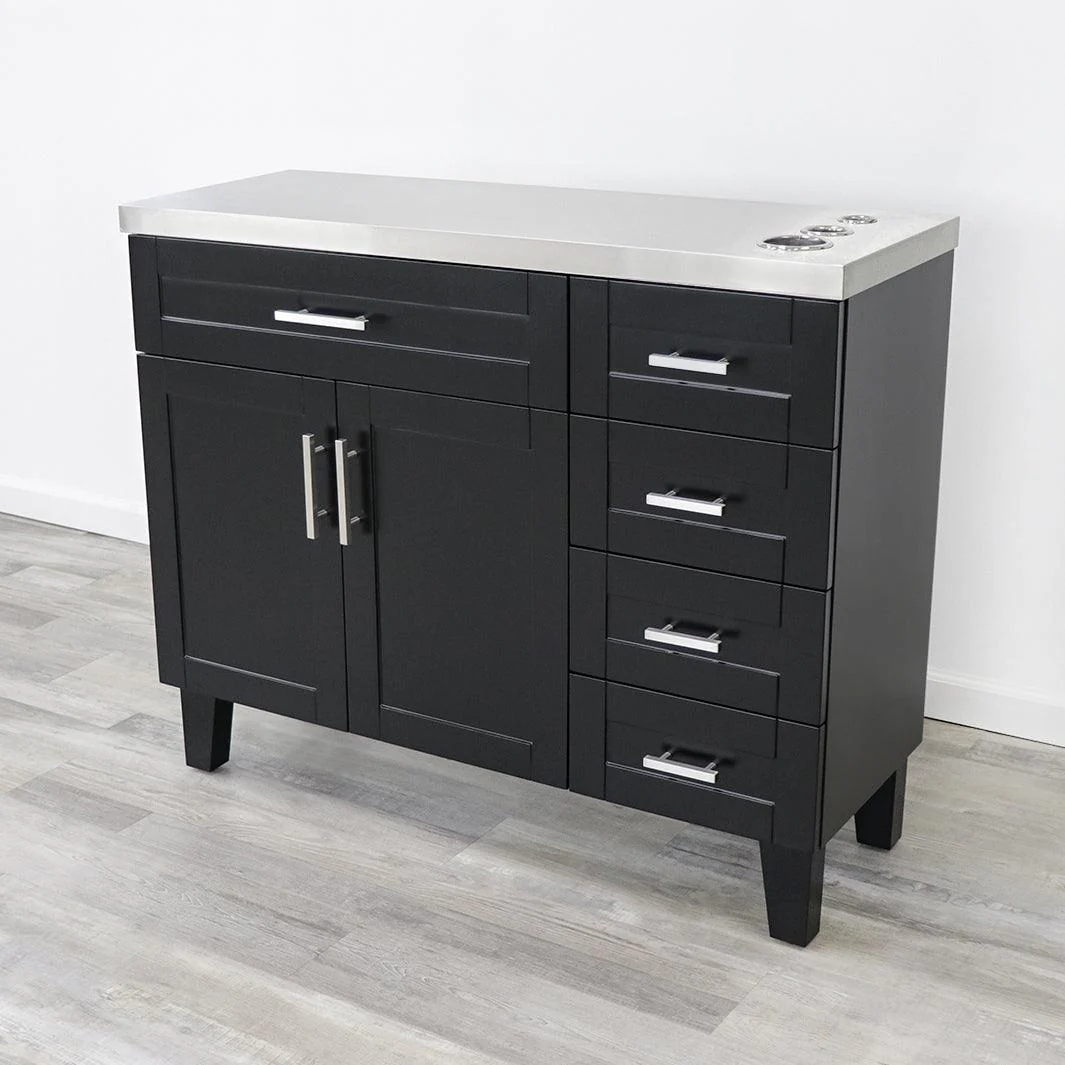 Benefit: Stay organized and efficient with our black salon stations designed to store everything you need within arm’s reach.