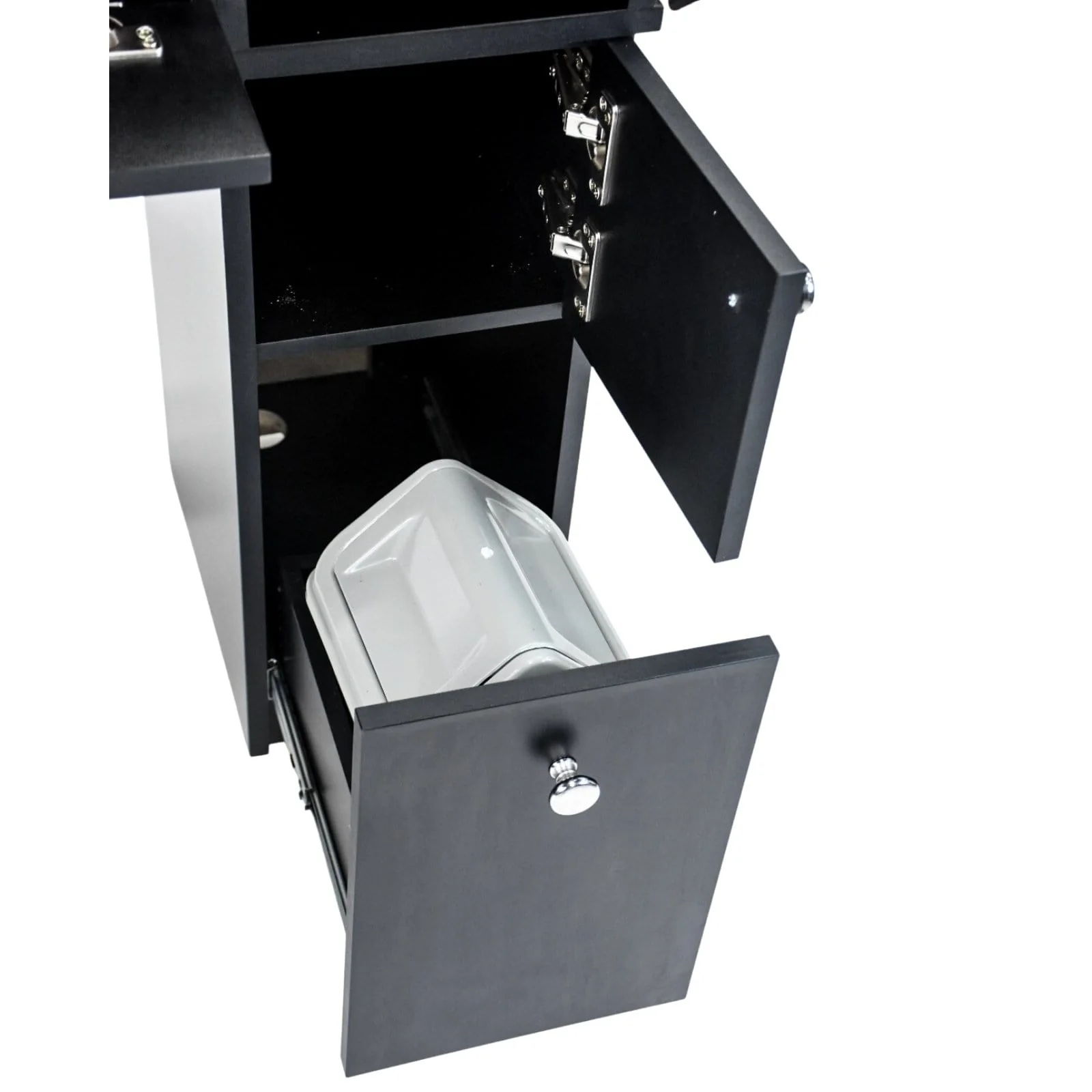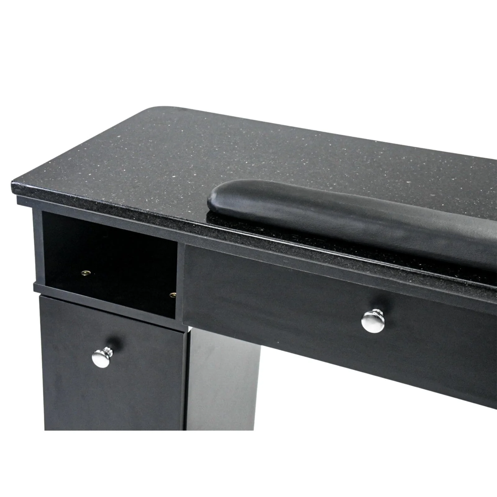 - Black Flecked Granite Countertop: The Sonoma II Manicure Table features a black flecked granite countertop, providing a luxurious and durable surface for all your manicure needs.