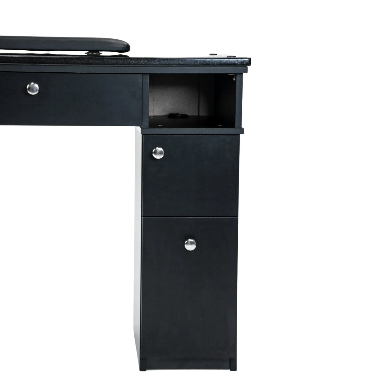 With its black flecked granite countertop, wrist-rest, and multiple storage compartments, this cheap manicure table is built to enhance every aspect of your salon experience. Below, we break down its features, benefits, and why it’s the perfect addition to any salon.
