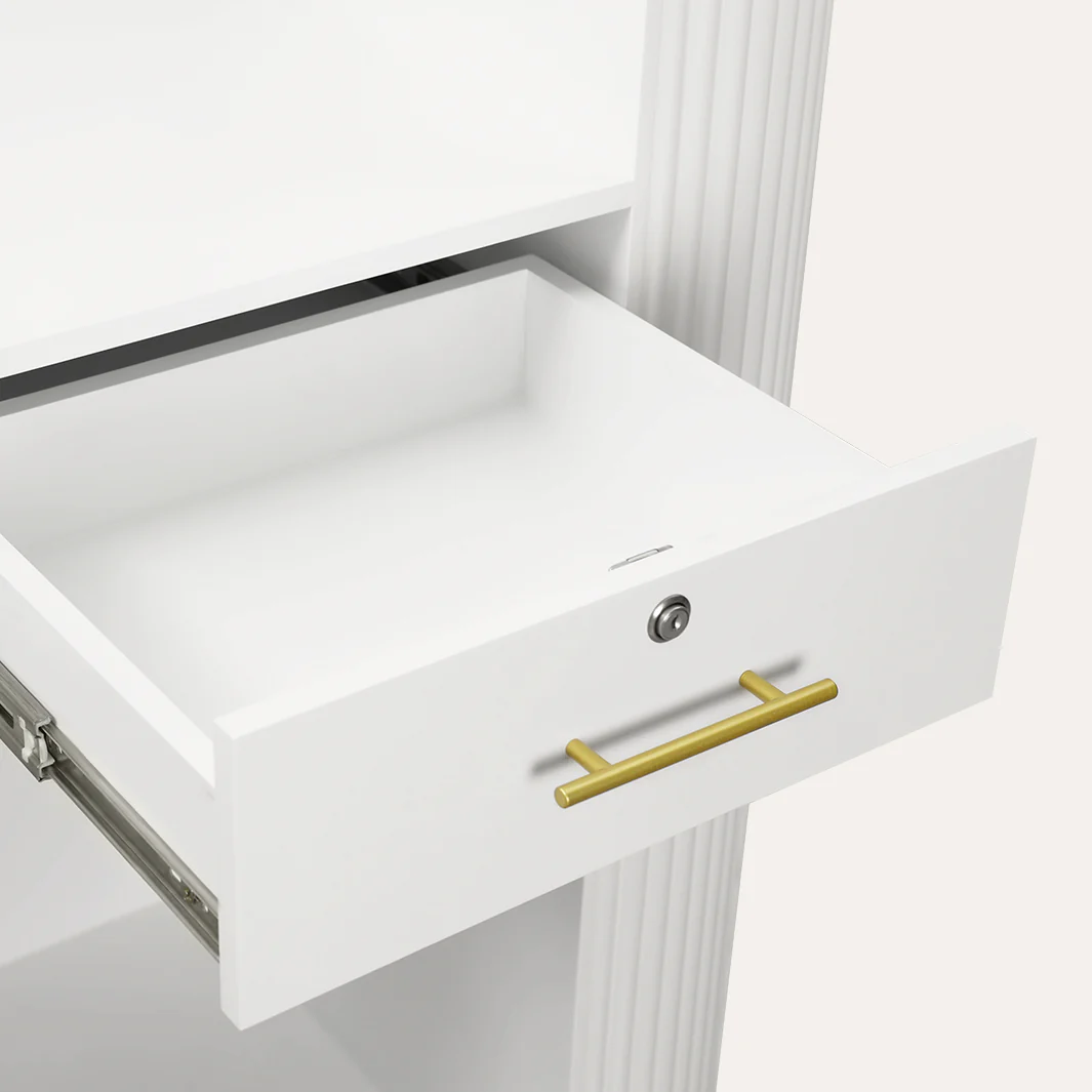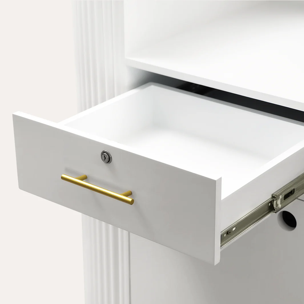• Secure Storage: Keep valuables safe with two lockable drawers and organize essentials in the ample cubby space.