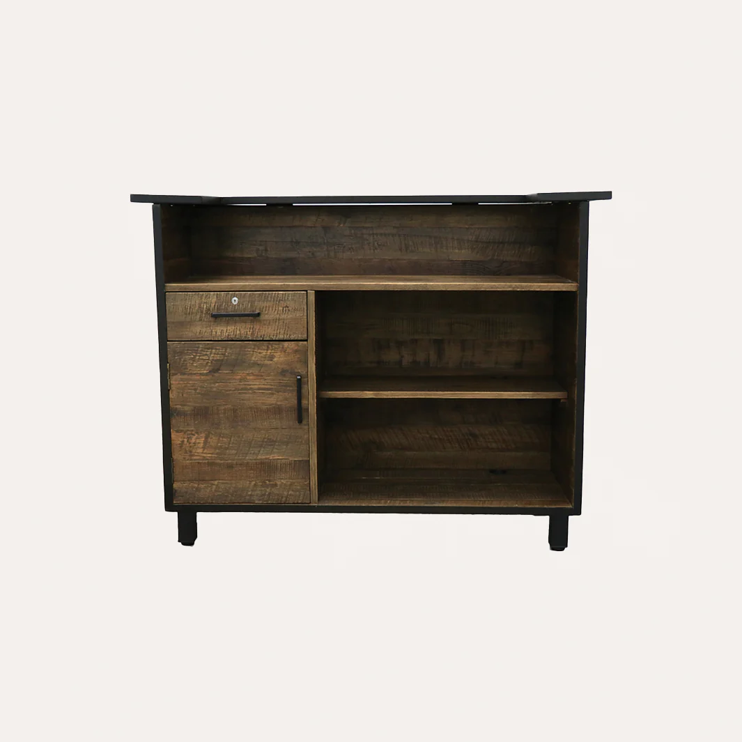 For businesses seeking a modern reception desk that combines elegance, functionality, and durability, the Sierra Reclaimed Reception Desk is the ultimate choice. Designed to meet the needs of contemporary offices, this reception desk elevates your workspace’s aesthetic while providing practical storage solutions. With its real solid wood construction, natural distressed finish, and matte black metal frame, the Sierra Reclaimed Reception Desk is the ideal addition to any modern reception area.