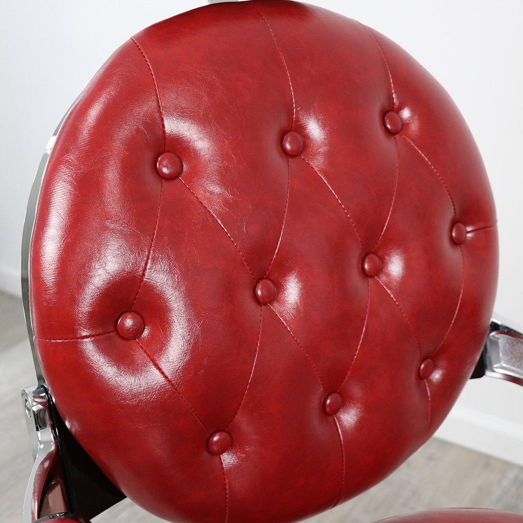 - Tufted Button Accents & Chrome Framing: Classic tufted buttons and polished chrome metal framing evoke the golden era of barbering, setting this red barber chair apart from generic models.