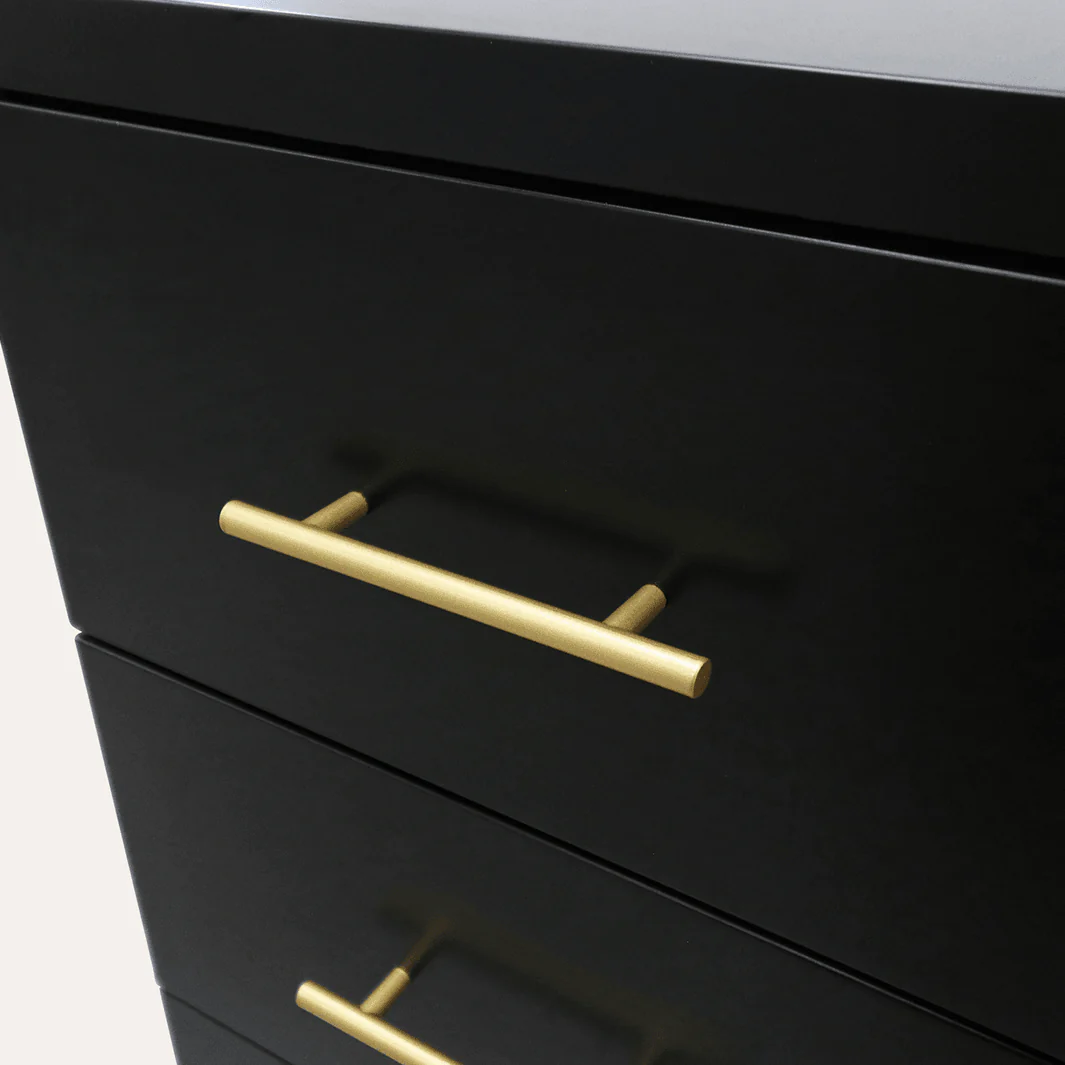 | Material | Hardwood with painted black or white finish, gold metal accents |
