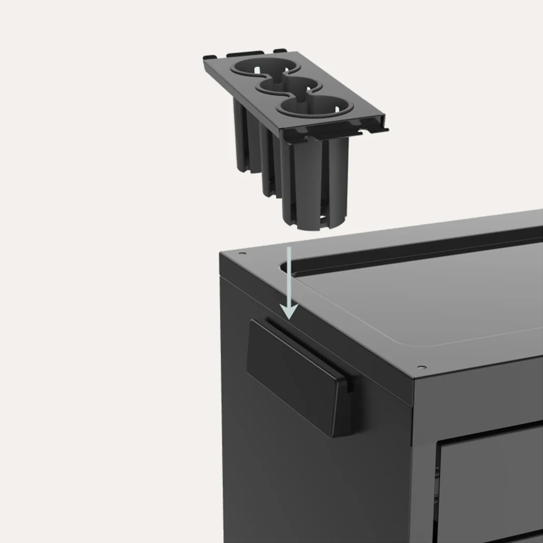 The side holders for both bins and appliance holders add extra storage options, ensuring everything has its place.
