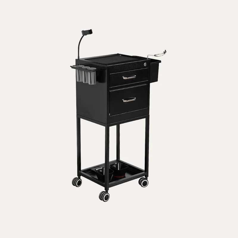 The Lockable Metal Trolley isn’t just a salon utility cart—it’s your salon or barbershop’s secret weapon. With its locking drawers, heat-resistant holders, and ample storage, this salon utility cart empowers you to work efficiently, impress clients, and grow your business.
