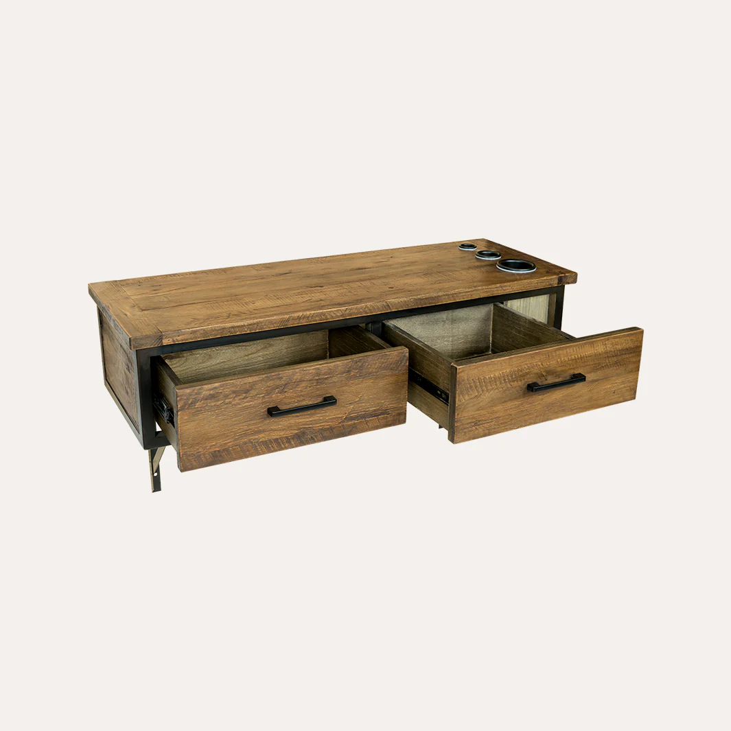 With its real wood distressed finish, two pull-out drawers, and three built-in appliance holders, this styling salon station is built to enhance every aspect of your salon experience. Below, we break down its features, benefits, and why it’s the perfect addition to any salon.