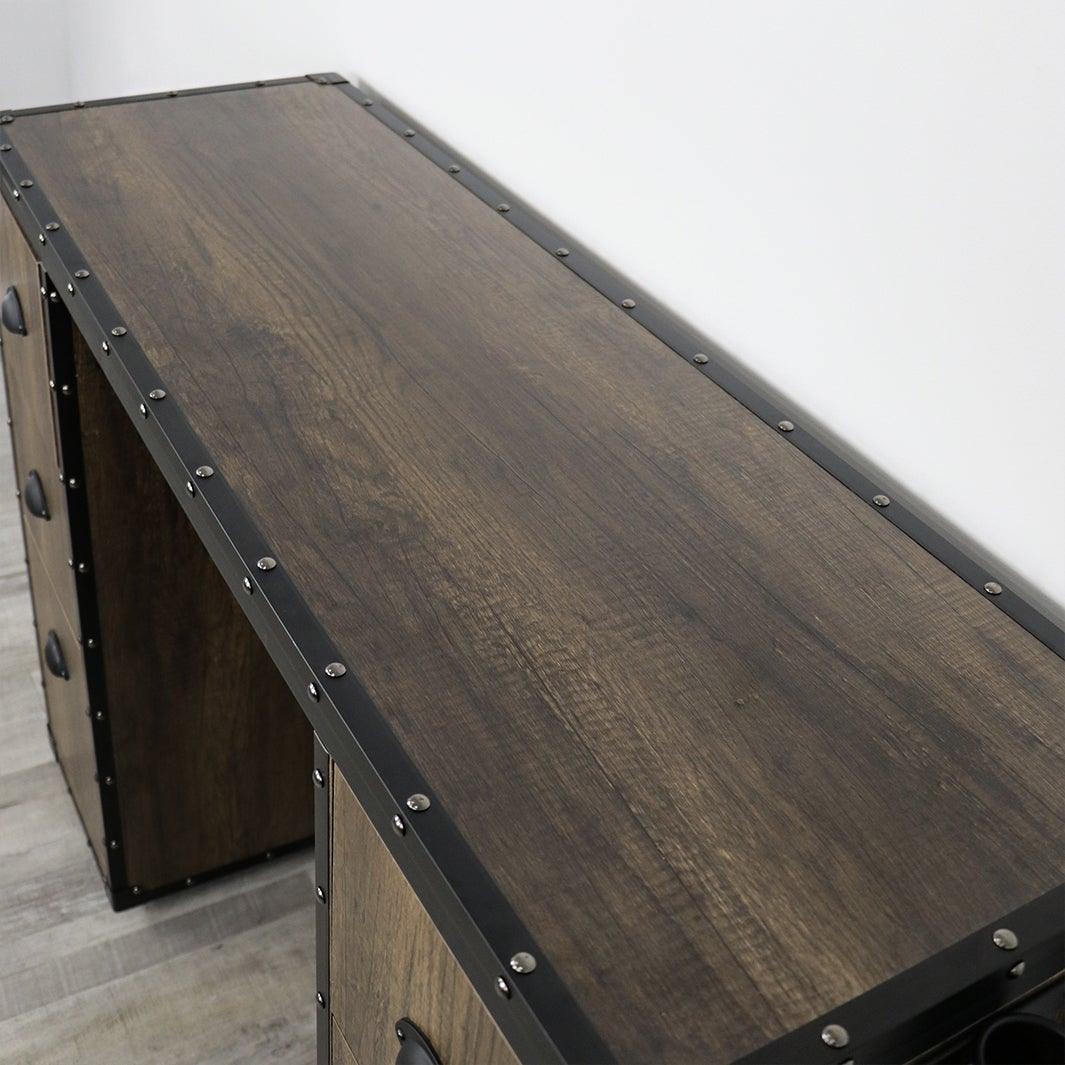 The Memphis Wood Salon Station is crafted with rustic mocha engineered hardwood, offering a warm, inviting aesthetic that complements any salon décor.