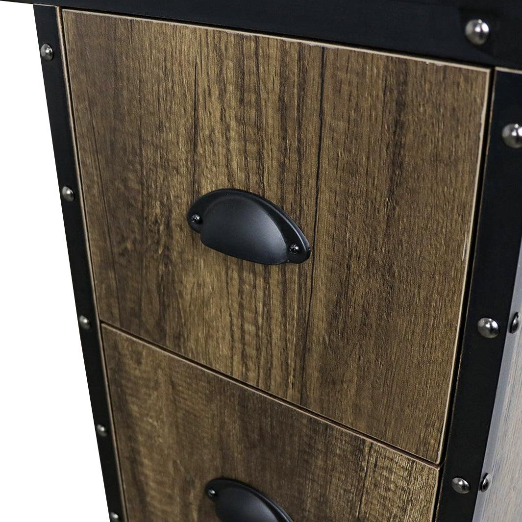 • Stylish Design: The rustic mocha engineered hardwood and matte black accents create a chic, professional look.
